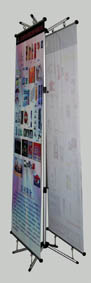 宽度可自由设定,高度可调节,最高240cm.可以夹挂轴或展板,适合无支撑的情况使用。 |