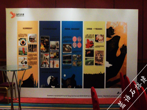 材料:环保写真布面,钢架结构。6米宽*3米高。舞台20厘米高,宽3米*6米。