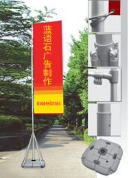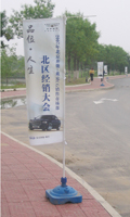 适用于户外、能够抵御一定的大风、旗面可以随风旋转、旗面永远是展开的没有褶皱的、四个底座可注72L的水或干细沙、携带方便——有手提包,并且方便汽车运输、组装简单、快捷、安全、可循环使用。