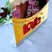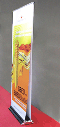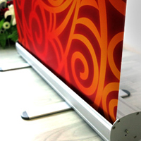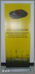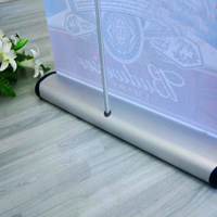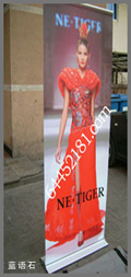此款易拉宝重量大,立地较为稳固,双面展示画面,适于特殊需要. |